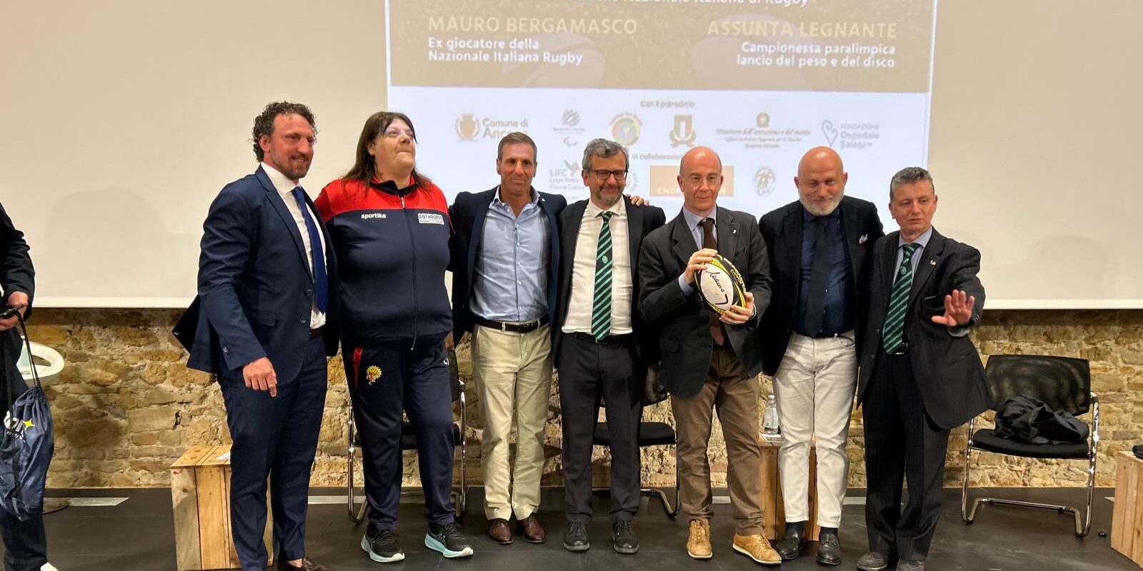 Poi le grandi emozioni dell’incontro alla Mole voluto dal Rotary Club Ancona Conero del Presidente Alessandro Scalise sotto la regia del socio prof. Giorgio Rappelli, insieme all’URA, con il sostegno del Comune di Ancona (c’erano il sindaco Silvetti, il vicesindaco Zinni e l’assessore Caucci) il Presidente del Coni Marche Fabio Luna, con il patrocinio di Panathlon, Comitato italiano Paralimpico, Ufficio scolastico regionale, Fondazione Salesi e Federazione italiana Rugby, in collaborazione con Lega Italiana Fibrosi cistica, Distretto Rotary 2090/Progetto EndPolioNow e Confartigianato di Ancona-Pesaro.