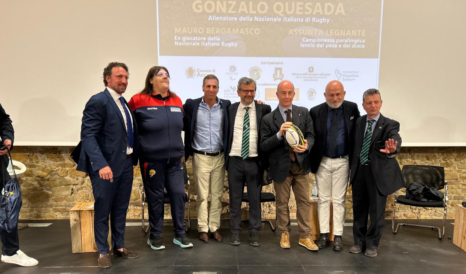 “Avere due o tre bimbi in più che si iscrivono alla scuola di rugby è più importante che vincere tutte le partite”. Questa la lezione numero uno di Gonzalo Quesada che ad Ancona insieme alla olimpionica di lancio del peso e del disco Assunta Legnante il 17 aprile scorso ha incantato i ragazzi dell’Unione Rugbistica Anconitana (organizzatore dell’evento) grazie al Presidente Claudio Martini, al Presidente Ernesto Cimino e al figlio Franco. E poi il monito dell’altro nazionale di rugby Mauro Bergamasco: “In questo sport non è la performance che conta ma avere cura del potenziale”.